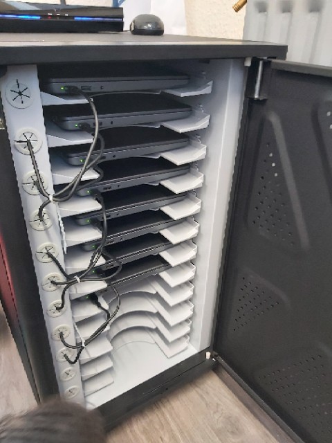 Without further ado, the equipment started arriving: a cabinet in which to house all the laptops: