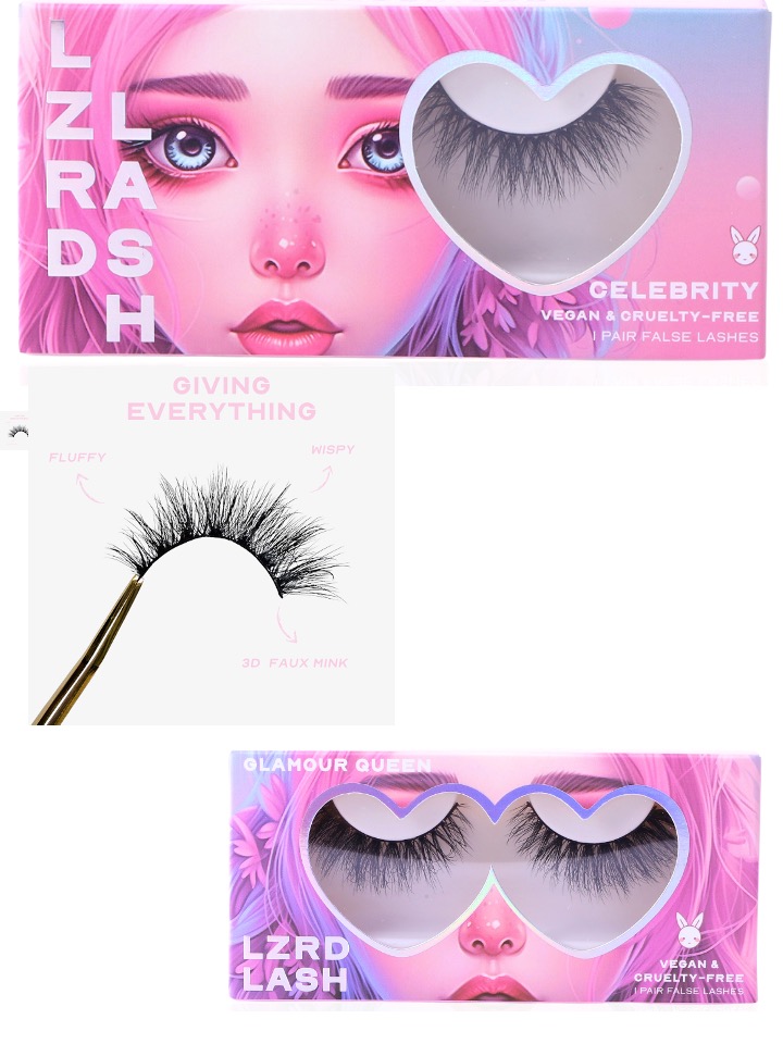 My personal experience with LZRD Lash was first class. In all honesty I’ve never experienced such amazing quality lashes. Normally I struggle not to damage flimsy lashes as I extract them from their box. Not so with LZRD Lash lashes – the adhesive fixing them in their box was only attached to a small spot at each end, making removal easy. They were beautifully soft and light and yet maintained their shape perfectly throughout application. The cute pink Hold It Hottie lash applicator was perfectly aligned, holding the lashes firmly but gently, and the vegan, latex-free and cruelty-free Let’s Glue This strip lash glue was rapidly effective, and easy to remove afterwards.