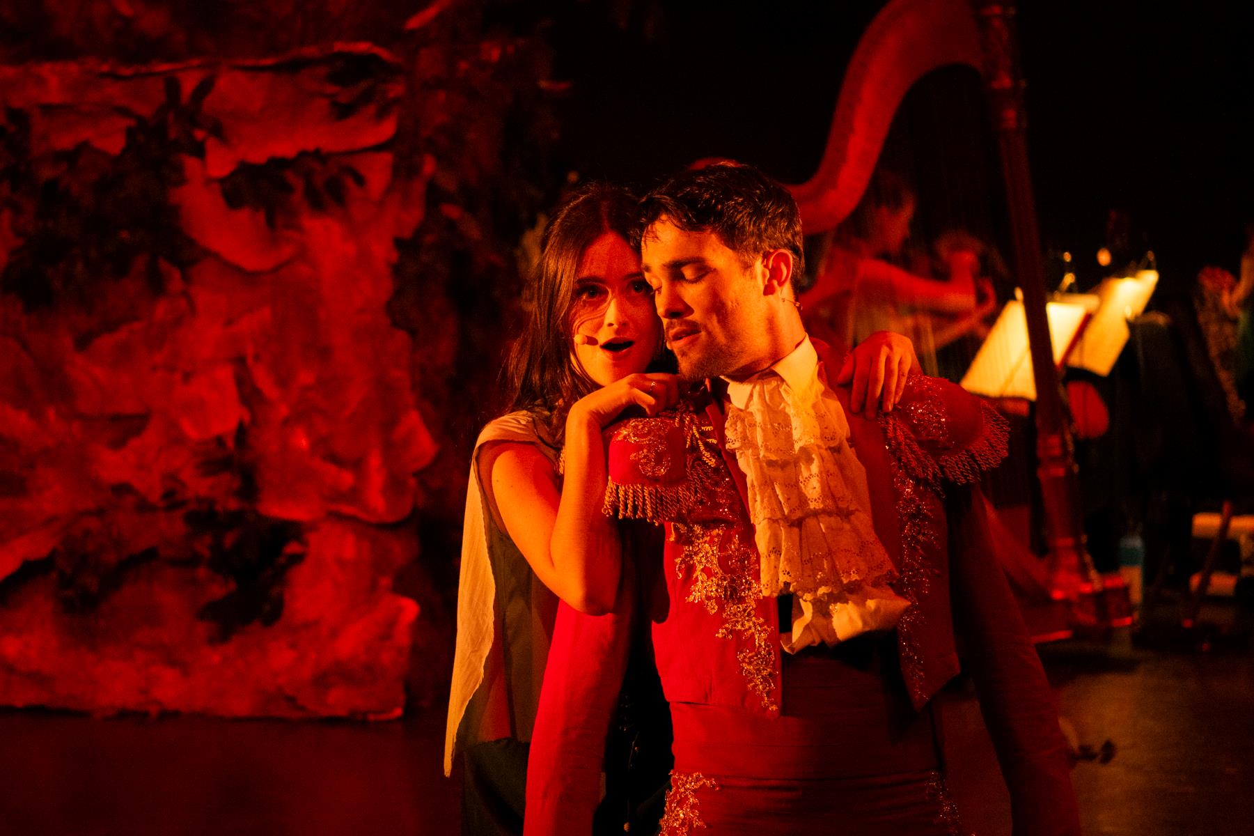 A wonderful cast of 16 performers, plus a live 12-piece orchestra (many of whom are hidden behind the set) do their utmost with the material. But they do struggle at times.