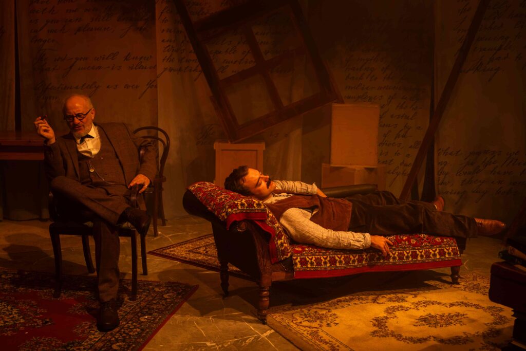 A bleak, brown set captures the mood. Sadly, for me, it matches the script and the characters too much as well. To avoid comedy, Marks and Gran have dipped their toes into meaty territory, into the very mind of Hitler to try to see why he became what he did. And their device is through Freud’s methods. But, really, this is a play about Freud, not Hitler. To paraphrase, once Hitler becomes Führer, Freud exclaims that he doesn’t know whether to admire Adolf for achieving his dreams or to be appalled by the fact that he has achieved them.