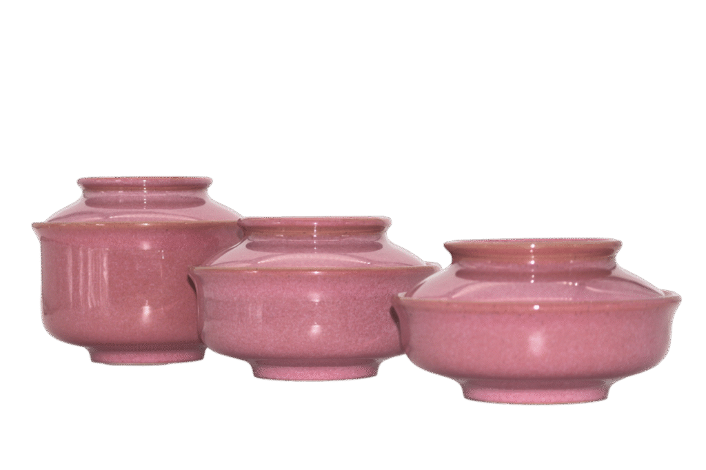 My bowls are Jade Green – just looking at them makes me feel calm and happy. But, great news, there are now two new colours – Baby Blue and Pink. So with nine colours in all to choose from – Lemon Yellow, Sea Green, Cobalt Blue, Pitch Black, Antique White, Blue Reactive, Green Jade and the two new colours – you’ll have no problems finding the perfect colour for your mood, and your kitchen.