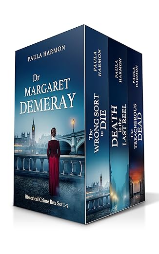 Here we have a three book offer – Kindle edition. Dr Margaret Demeray – Historical Crime Box Set 1-3. I find historical’s fascinating as one usually learns so much, and you certainly will from these three books. The Wrong Sort to Die by Paula Harmon: June 1910. Dr Margaret Demeray gives a stranger called Fox information about a dead down-and-out. When a second man dies the same way, Margaret starts to wonder why the enigmatic Fox keeps turning up to ask ever more complex questions. Margaret must discover the truth before someone silences her for good. Death in the Last Reel by Paula Harmon After the violent murder of three policemen in the line of duty, Fox asks Margaret to help with a mission and she can’t wait to assist. How can they discover who is behind the threat to London when it’s not entirely clear what the threat actually is? The Treacherous Dead the third in the series by Paula Harmon: It’s summer 1912. When Dr Margaret Demeray tells Fox about an unlikely spy plot, something reminds him of an old case. Just as they decide the allegation is nonsense, a young woman is found dead and evidence at the scene links Fox to her murder. Is someone now seeking revenge?
