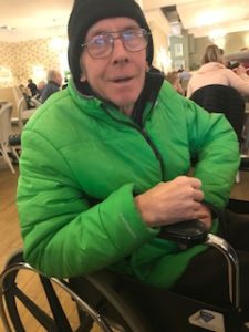 It is heart -breaking. He cannot walk or weight bear and is usually sat in a chair or in the wheelchair I bought for him. He doesn’t ask for the toilet anymore. His hair is long, no hairdressers allowed.