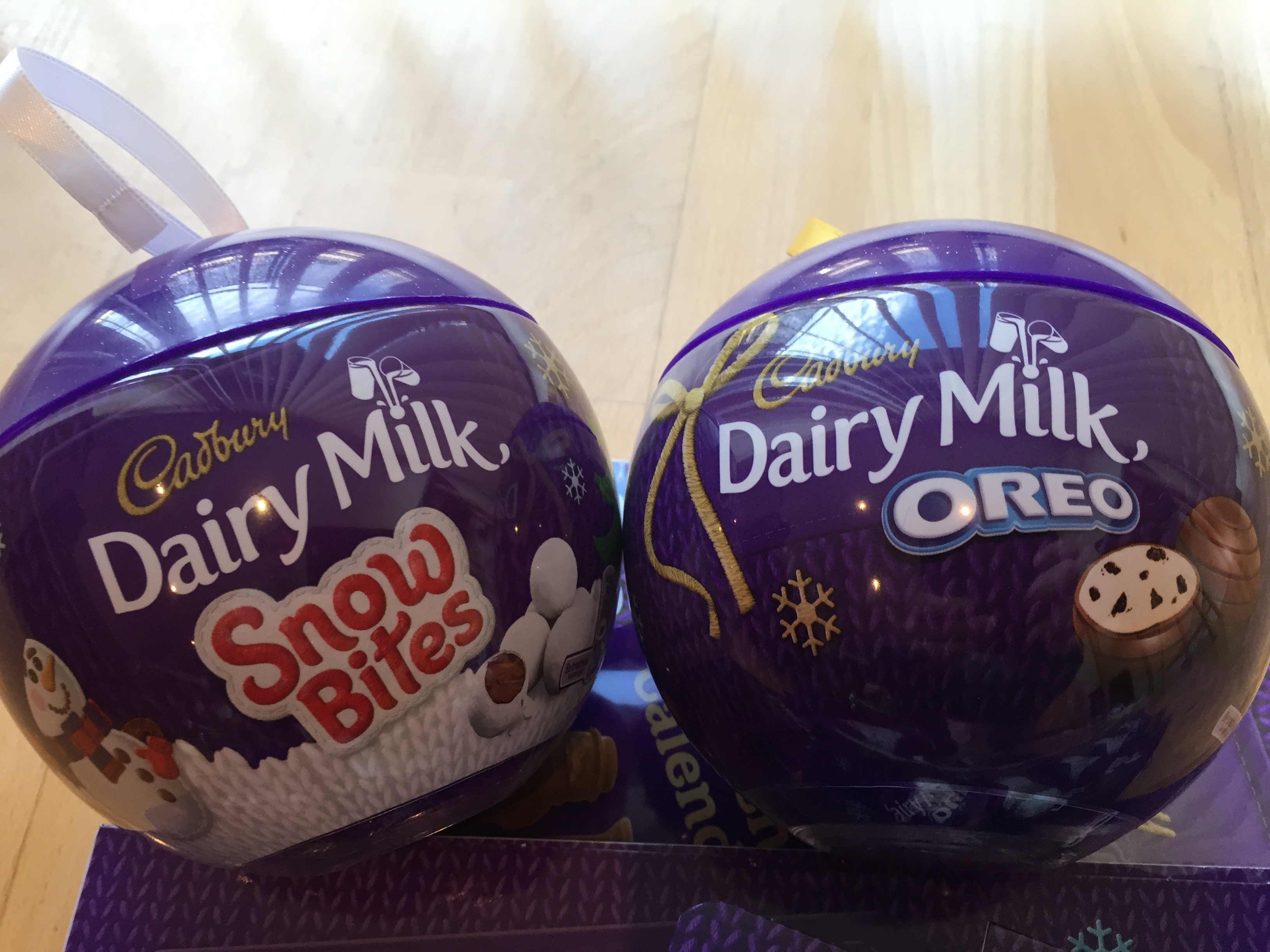Add a touch of Cadbury Christmas purple to your tree, or surprise your relatives by gifting them with the new Cadbury Dairy Milk Baubles. These spectacular supersized baubles are available in two different varieties. Cadbury Dairy Milk Oreo Baubles are filled with Cadbury Dairy Milk chocolates complete with a vanilla flavour filling and Oreo biscuit pieces. Cadbury Dairy Milk Snow Bites Baubles includes 4x34g bags of Snow Bites; Cadbury Dairy Milk chocolate balls encased in crisp sugar shells and dusted with delicious icing sugar. These Baubles are perfect for a fun gift for any member of the family. RRP £4.99. These are brilliant. They can hang on the tree and are as festive as they are delicious.