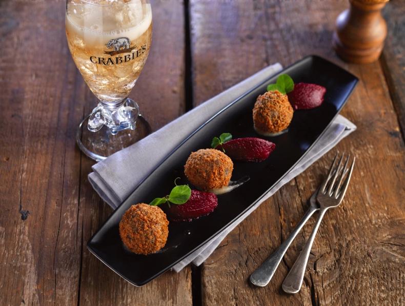 Starter; Haggis bon bon with Crabbie’s Ginger beer & beetroot