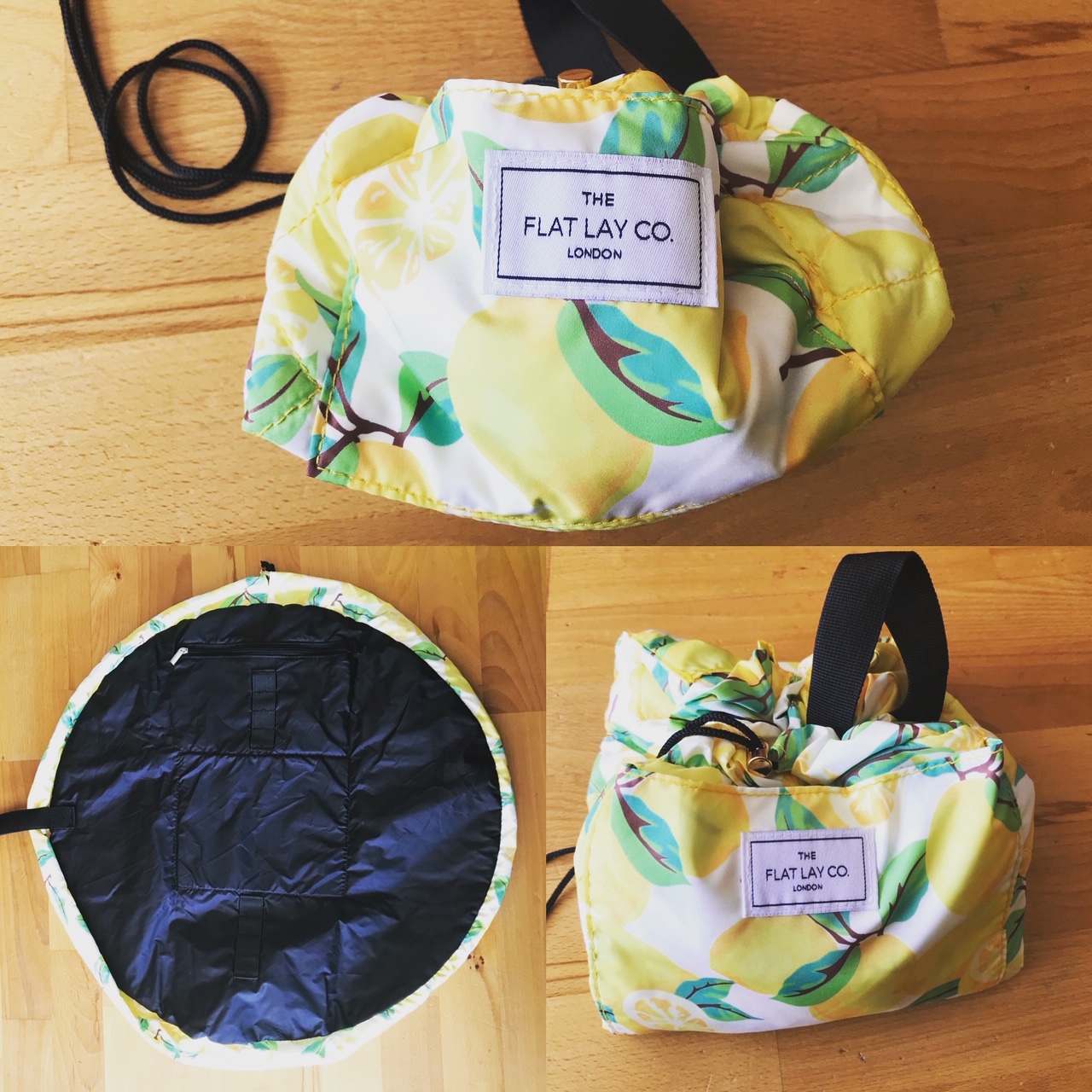 This is an amazing open flat makeup bag and cosmetics mat. This one is in Lemon. There is an “essentials” one which is the smaller one and carries 6 pieces of makeup comfortably. The bigger one is 52 diameters when open. Stylish and convenient: this is a beauty winner. Why did no one think of it before?