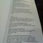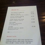 We are handed a narrow piece of card with a selection of six desserts and a choice of dessert wines on one side and a coffee list on the other. The dessert is always my favourite part of the meal – and I always make sure and leave room for it. But, this list is not exciting me. There is The Adamson sundae, apple trifle, sticky toffee pudding and a selection of ice cream and sorbet. It’s a ‘what you’d expect’ list of desserts, rather than the original – and innovative – starters and main courses that we have just enjoyed. I’m about to order a cappuccino as dessert when Adrienne walks over.