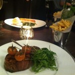 I’ve been eating fillet steaks with peppercorn sauce since I was 5 years old – and it’s safe to say that the combination not only brings back childhood memories, but would also be on my ‘last supper’ list. That pairing of lightly pink meat with ladles of cream based peppercorn sauce is heavenly – in my opinion. So I am a little sad to see a gravy based peppercorn sauce arrive on my plate. That aside, the presentation is spot on and the steak is cooked just the way I ordered it – medium rare.