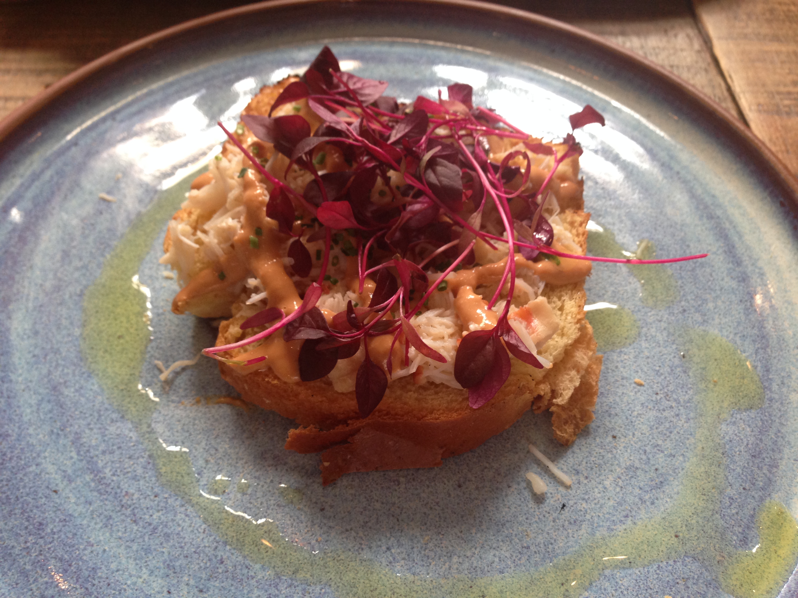 Pittenweem crab with crème fraiche and lime and chilli butter on toasted sourdough £9.50