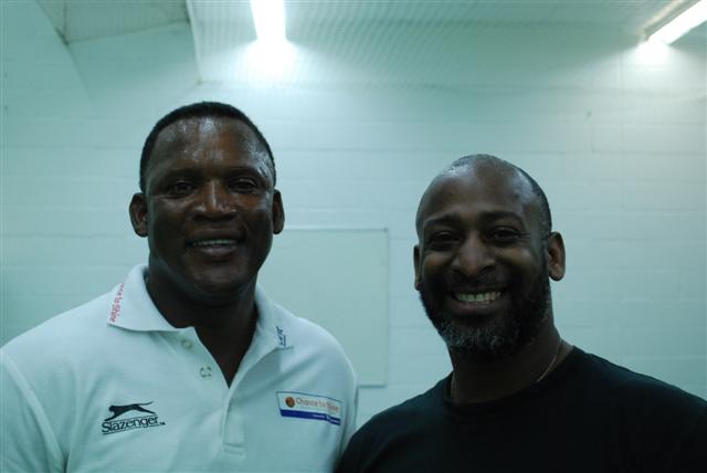 DSC_0636 (Small)The first of June. One of those beautiful early sunny days made even brighter by the presence one of cricket’s sporting heroes – and undoubtedly England’s best fast bowler of the 20th century – Devon Malcolm.