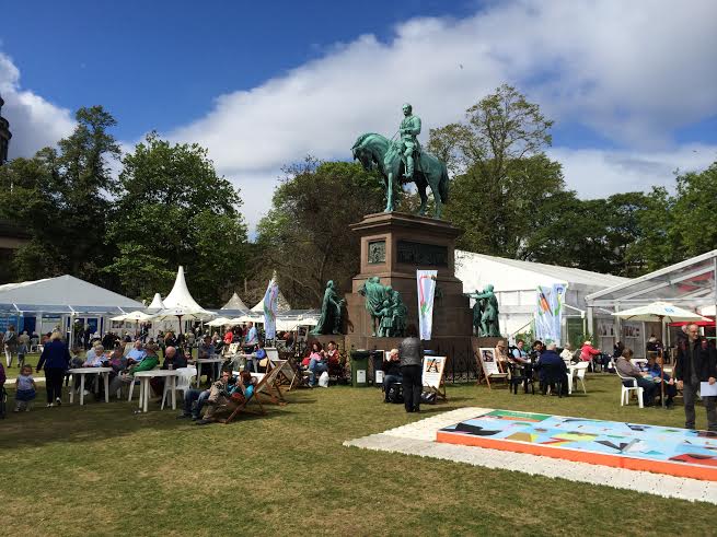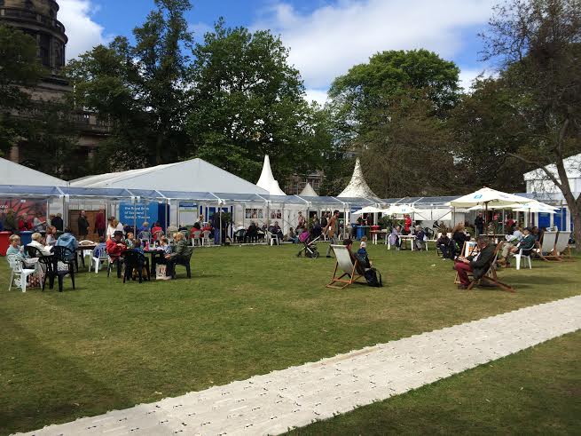 The Edinburgh International Book Festival 2014 was held in the beautiful Charlotte Gardens in the centre of the city. As I approached I could see the tents and marquees clustered beneath the trees and neat crocodiles of school children in pristine uniforms being herded by their teachers towards the venue.