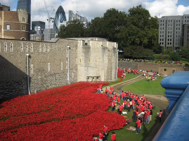 Yesterday, on a brilliant clear October morning two of the granny administrators of Words for the Wounded, Jan Speedie and Margaret Graham, arrived at the Tower of London to view the art installation Blood Swept Lands and Seas of Red.
