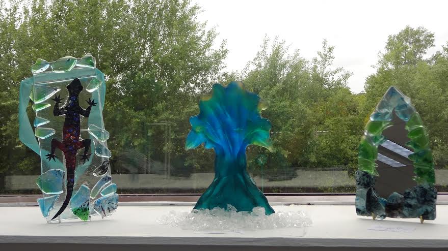 The emphasis will be on learning glass techniques, such as cutting, slumping, using different moulds and a wide variety of materials. People go home with at least three items such as a funky glass mirror frame, a quirky piece to display in the window or hang on the wall, or maybe a striking pendant or earrings.