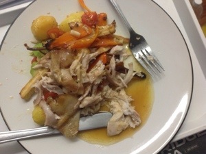 Laura has told me off for not eating enough vegetables so last night I had homemade fish and chips with peas and roasted carrots. The day before we had peppers stuffed with tuna and mozzarella. Yesterday at Sainsbury’s I bought mushrooms, cucumber, iceberg lettuce, parsnips, carrots. I also got tomatoes, avocado and olives. Pretty healthy and we already had some peppers in the fridge.