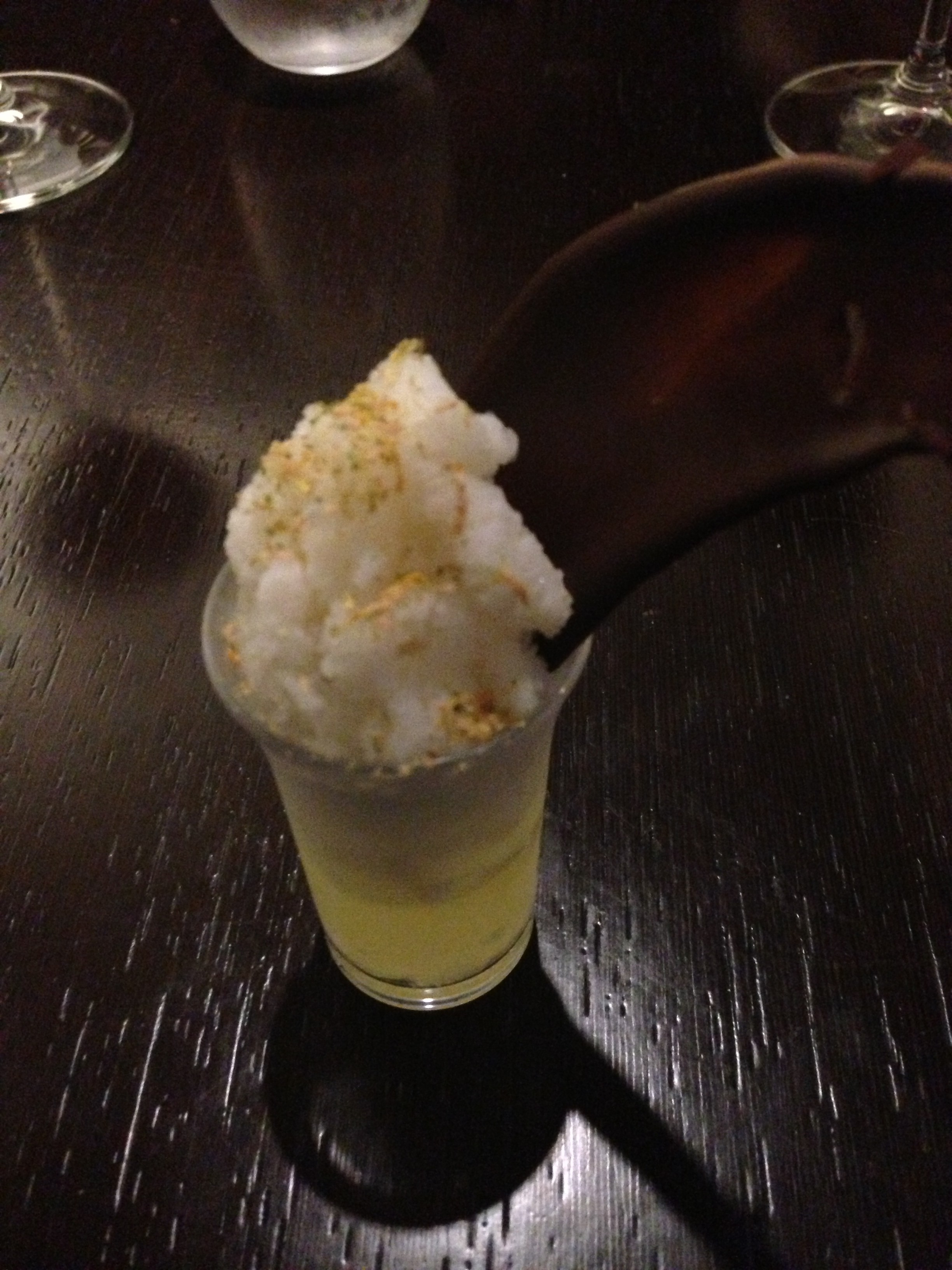 This was so wonderfully different. The sorbet was great and the slow gin was a great touch. Wonderful.