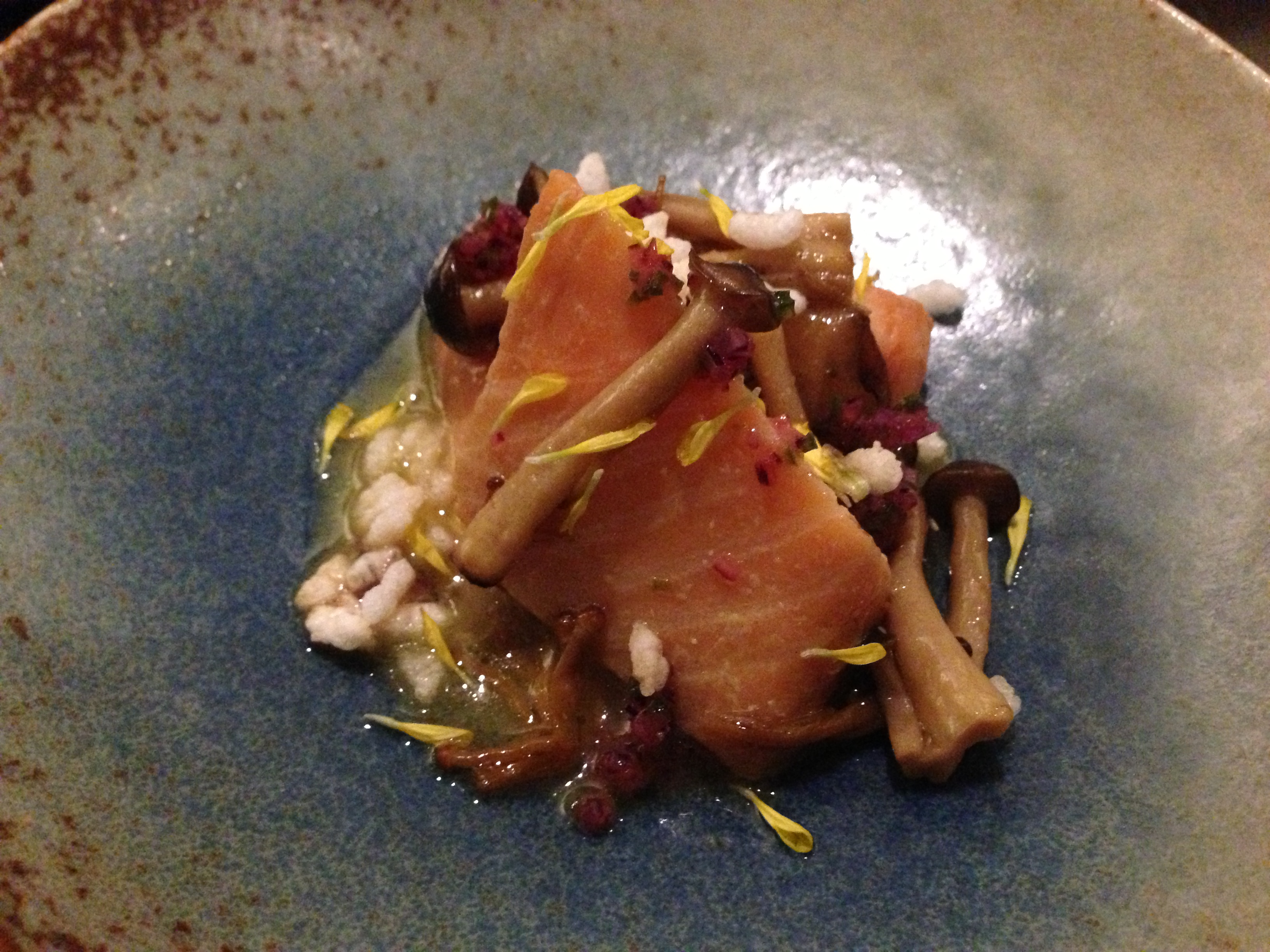 The seabass was perfect. I have had a lot of seabass in restaurants and this is high in quality and wonderful. It was exciting to tr y the homemade Koji. Koji, if I’m not mistaken, is fermented cooked rice and or soya beans. Koji is at the heart of Japanese cuisine and is used to make soya sauce, miso and sake. Hear it added a nice kick to the seabass and chef should be rightly proud of his/her creation. It was an original and new experience.