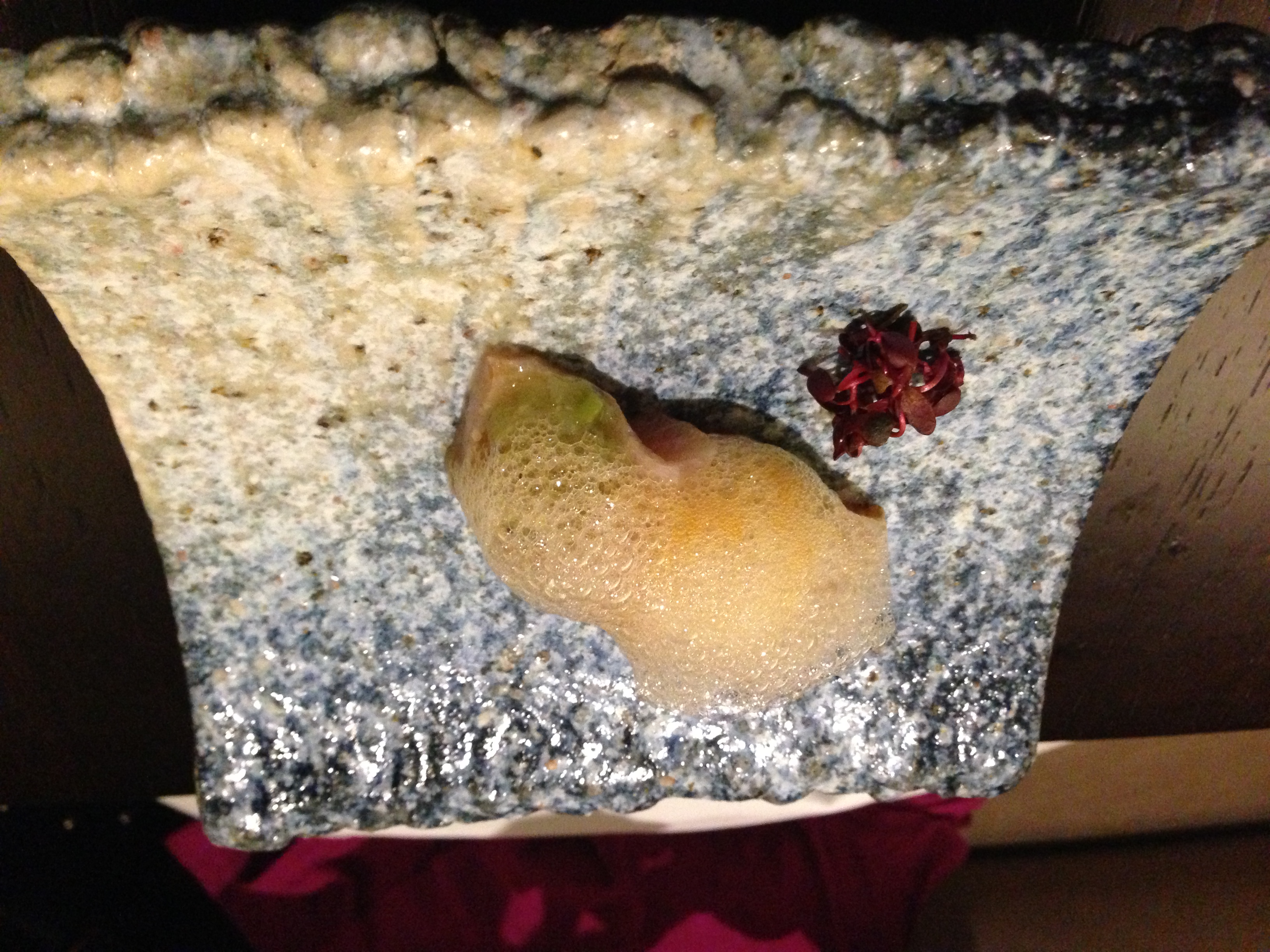 These are amazing. The waiter tells us to take a cone with some sauce and then dip it in the volcanic salt. Yum. A great mixture of taste and texture.