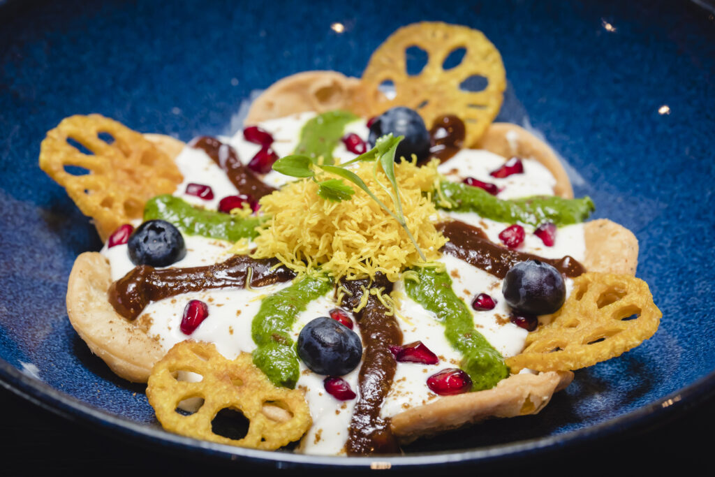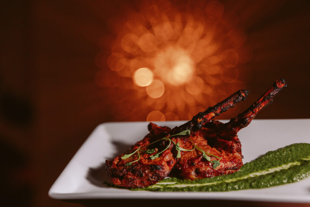 Flora Indica is Indian Fine Dining at its most sensual. The location, a very smart establishment just off of The Old Brompton Road. We dined on a warm sunny day and the front shutters were open for guests to dine indoors/outdoors whilst watching the World go by. The decor is a friendly nod to British culture featuring a gorgeous blue phone box… the perfect place for a photo op and opulent green furnishings. I mean this is simply the perfect date night spot.