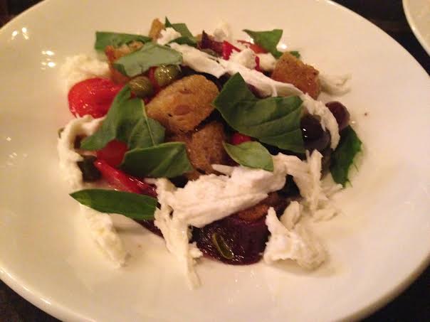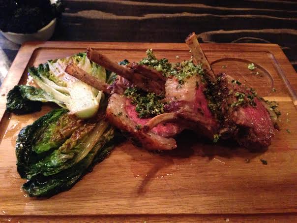 Next up is a sharing dish of Roasted rack of lamb with herb crust and braised baby gem, along with Tuscan Panzanella salad with tomato, roasted red onions, croutons and garlic, and a side of Purple sprouting broccoli with chilli oil and lemon. The lamb is delicious, the herb crust and braised baby gem really add to the dish, the salad is wonderful and the broccoli is good, if a little bit too spicy for me. The food is excellent and the ingredients are a great, unique mix.