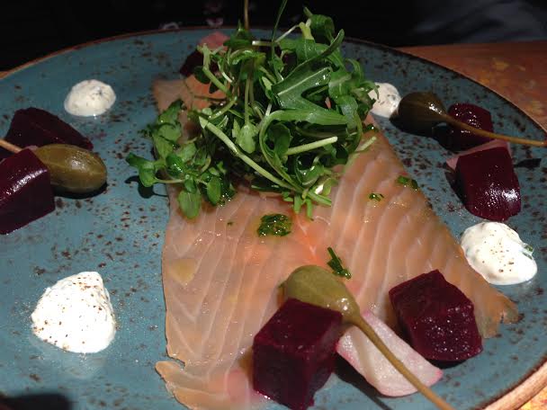 Paloma, Marcin, James and I arrive and head to the restaurant area. The menu has a great selection and it takes us a while to decide what we want. We order our starters and a cocktail each.