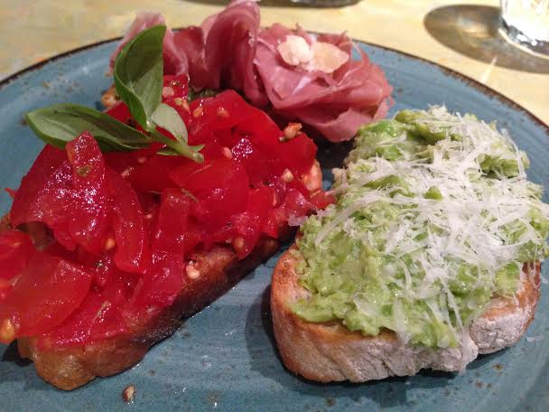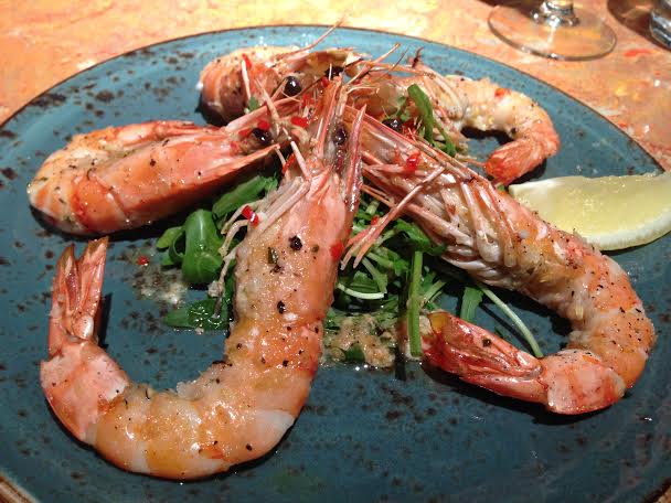 Paloma has the H Forman’s Scottish smoked salmon, roasted beetroots & horseradish cream which she says is earthy and smoked. The horseradish was a perfect accompaniment, didn’t have too much of a sting. Marcin has the Bruschetta 3 ways (Parma ham & pesto, Datterini tomatoes, peas, broad beans & pecorino): he says it is fresh and the pea complimented the mint well. James had the Gamberoni – baked king prawns, smoked garlic, chilli, Sicilian lemon butter, rocket & parsley: he says the prawns were huge and juicy and the sauce was amazing. For my starter I had Buffalo Mozzarella, Pixel tomatoes, Sorrento olives, toasted pine nuts, wild rocket & lemon infused olive oil. It was amazing. The ingredients are high quality and the combination really works well together.