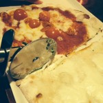Prezzo give you a pizza cutter for ease. So I cut each section into threes and dig in. The pizza is as good as any I have tasted in the UK or Italy. The base is light and the flavours from each different topping really come through. My favourite is the béchamel sauce and buffalo mozzarella.