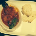 My partner orders two large glasses of the Sauvignon for us to try. It’s a drinkable wine that I think would go well with any vegetarian, fish or chicken dish. But it’s too non descript for me. And my partner agrees. So we scan the wine list again (which has a good selection of Italian whites from Trebbiano and Frascati to Pinot Grigio and Fiano) and order a bottle of Verdicchio Urmani Ronchi DOC. This is one of my favourite whites. To me, it’s the Italian Chablis.