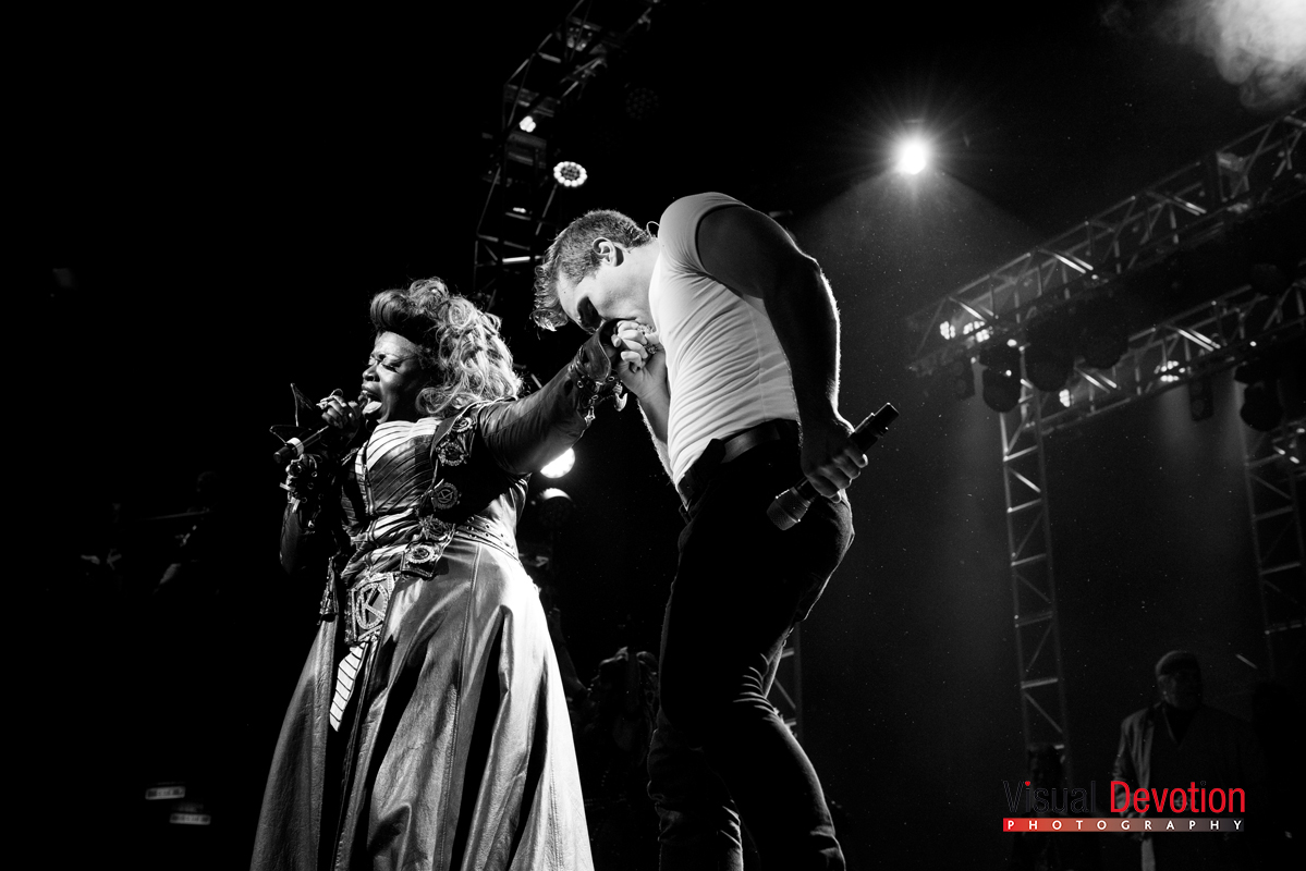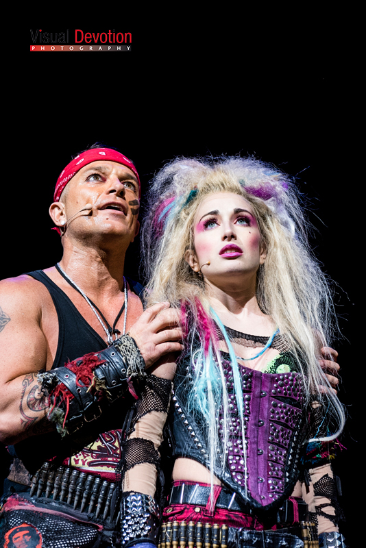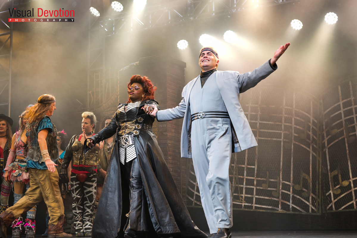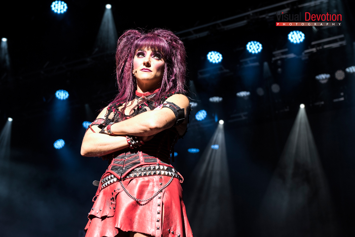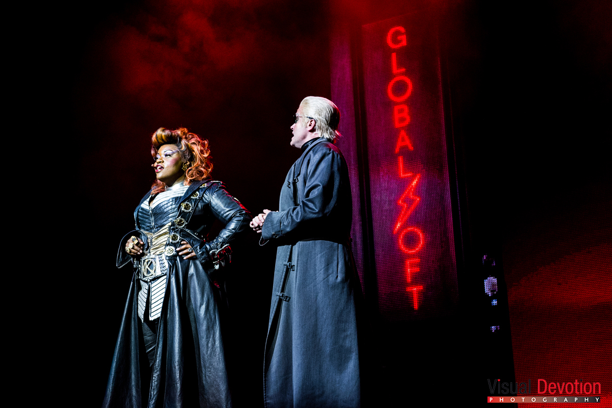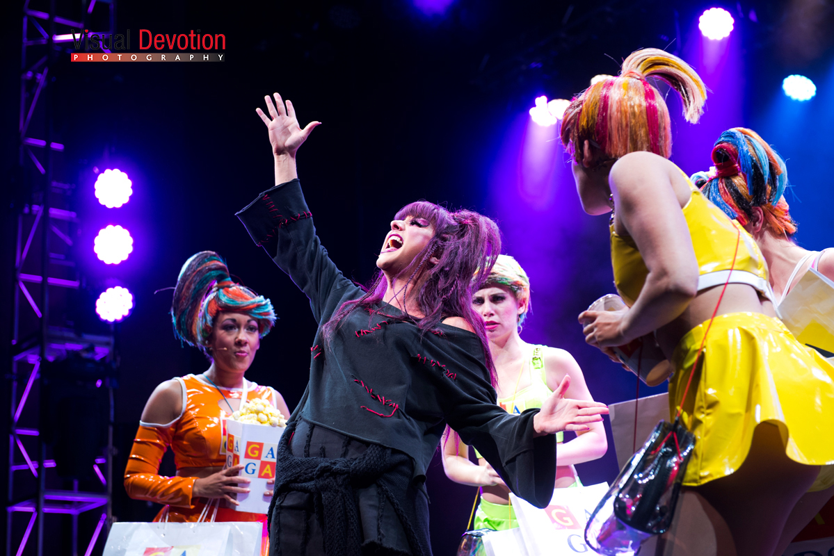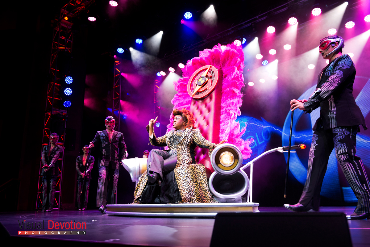 Killer Queen (Allyson Kaye Daniel), the villain, an iconic figure, ruler of the world with an amazing rock/soul voice. She’s camp, sexy, voluptuous, feisty, funny, powerful and power crazy, ruthless, the BOSS. Every man’s dream of an older woman with a strong bi-slant. Allyson carried this character to the extreme, gorgeous and so 80’s-inspired… sexy!
