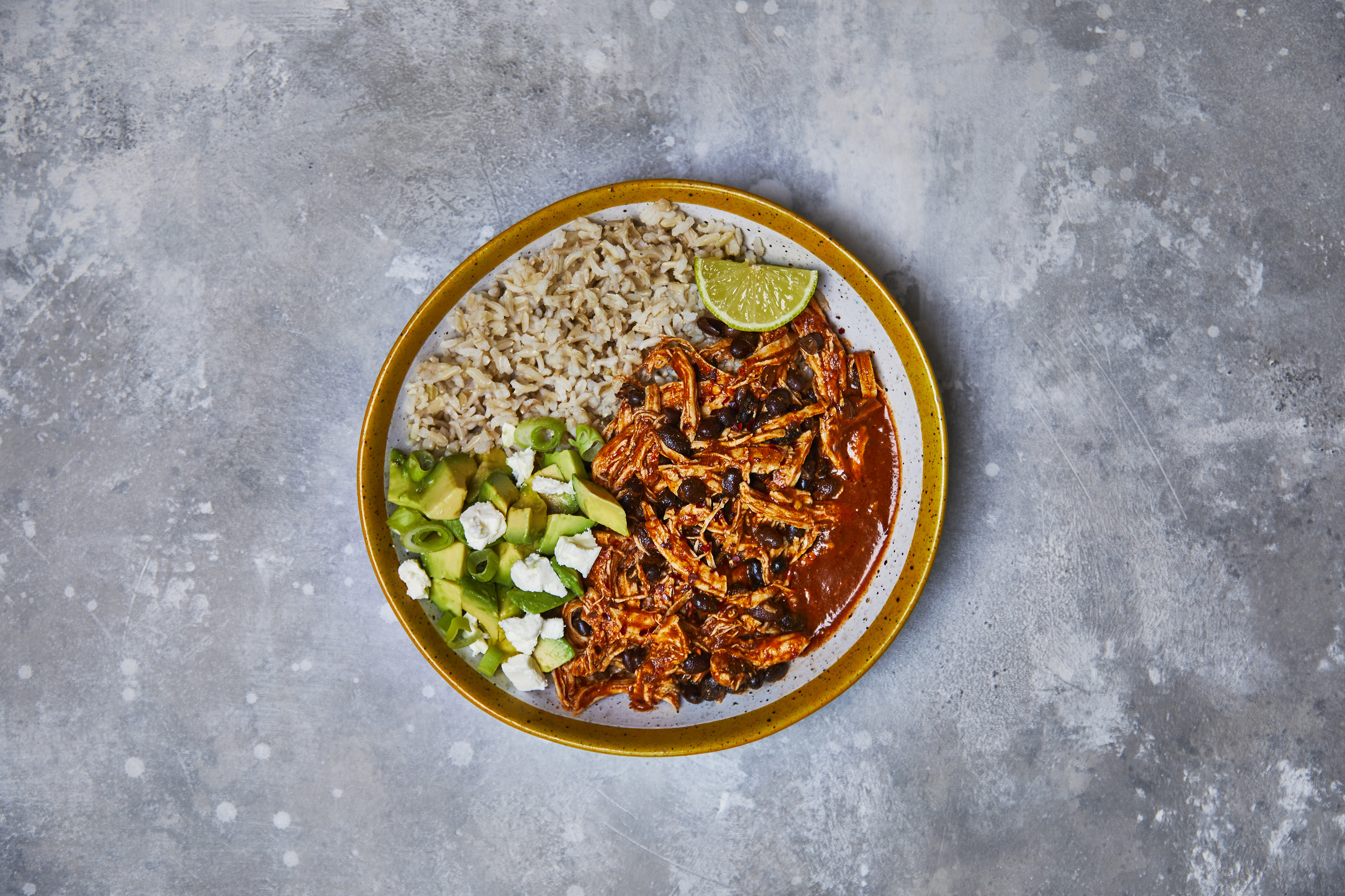 Step 9: Serve the chicken chilli with the brown rice and feta & avocado salsa to the side. Bangin’!
