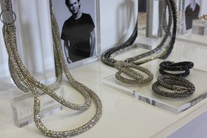 I also walked into my idea of heaven the Atelier Swarovski Collection exhibiton. The S/S 2013 collection is collaboration with different designers from jewellery and product designer Stefano Poletti to shoe designer Nicholas Kirkwood. Each designer took Swarovski’s crystals and used them in very different ways. My favourite collaborations were Vanessa Seward who is an Argentine Fashion designer, she says of her designs that they were inspired by ‘the kind of ethnic necklaces chic Parisian boho women use’. Take a look at her pieces below…