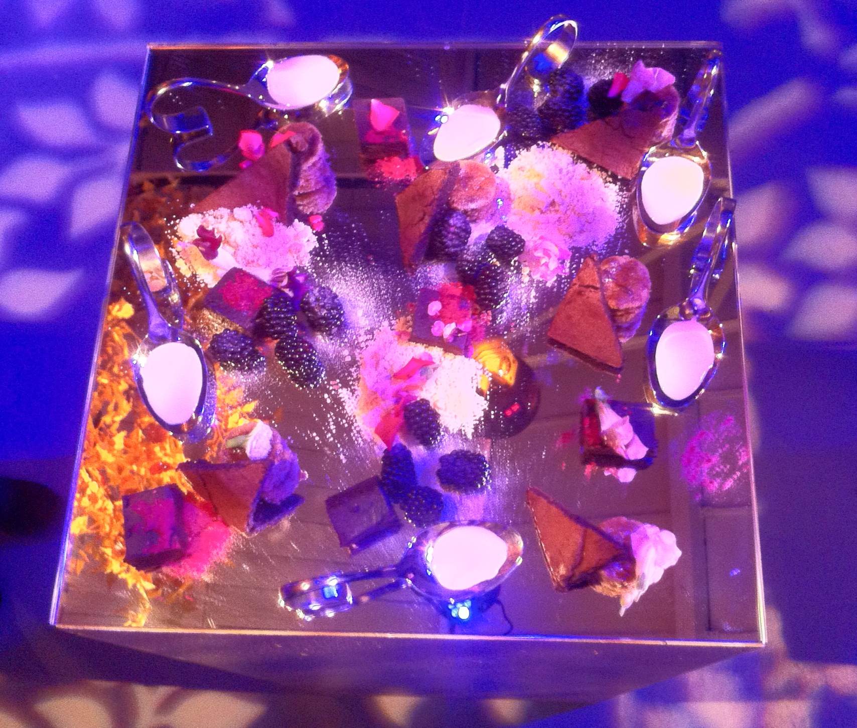 Dessert. Yummy. We put 24 carat gold on our lips to start. Then we had a Baileys Chocolat Luxe and helped ourselves.