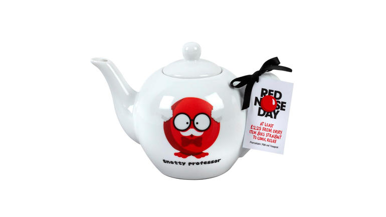 The porcelain Red Nose Day teapot featuring the Snotty Professor costs £4.99 from Robert Dyas or from the online shop, with at least £2.25 from each sale going to Comic Relief.