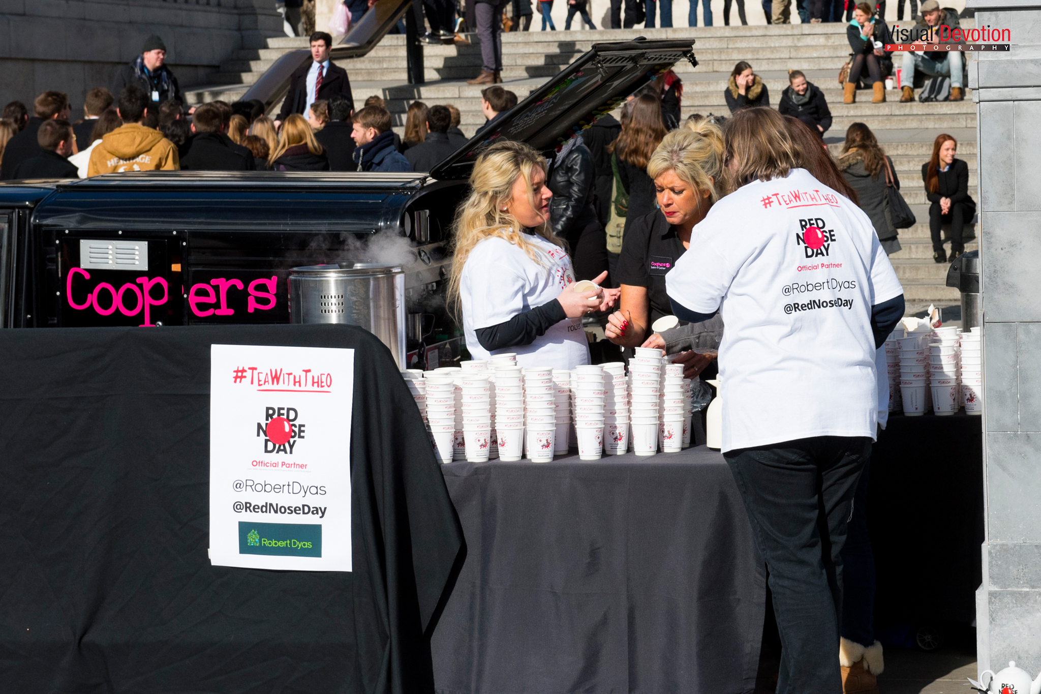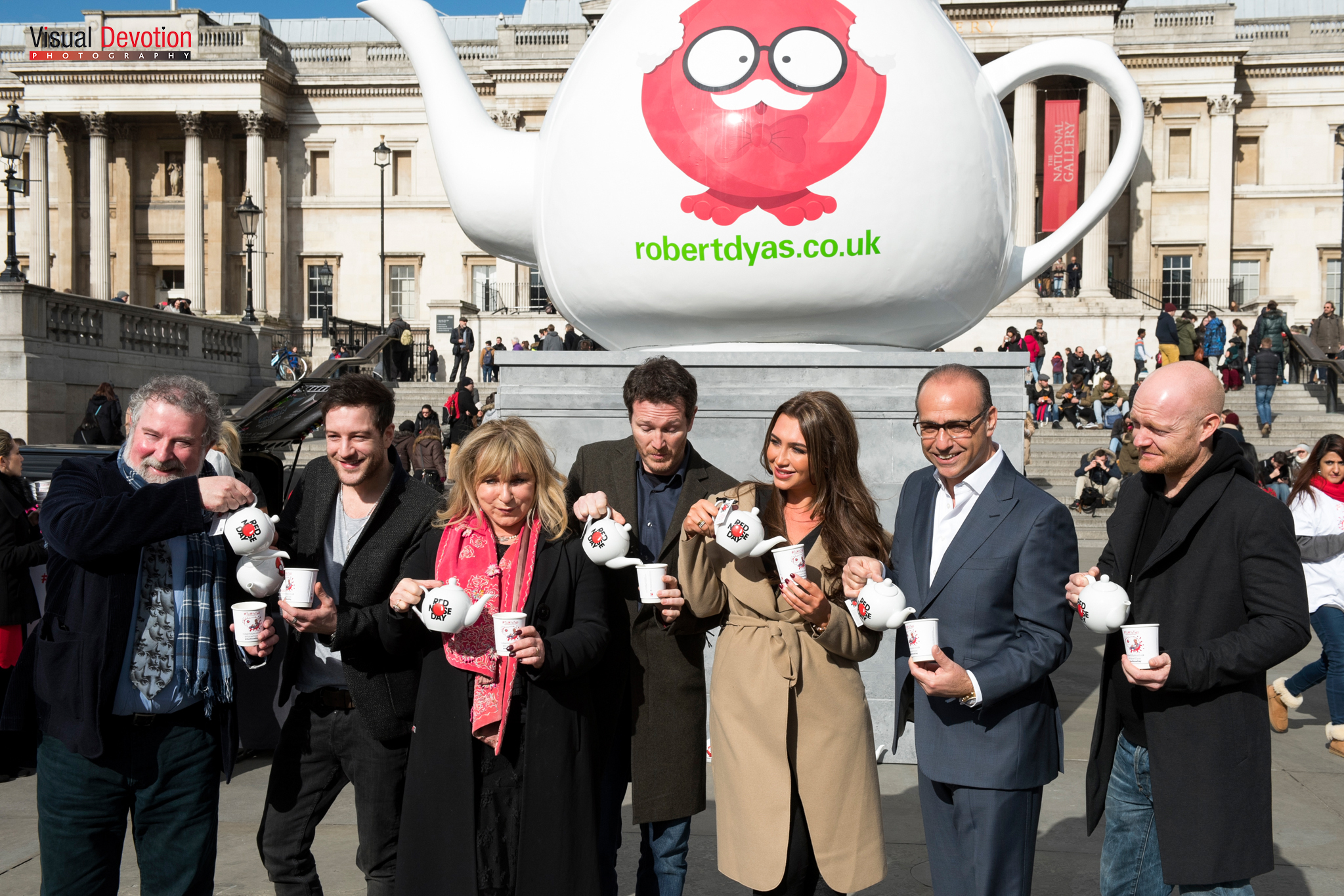The brief was to get myself to Trafalgar Square at 11:45 on Friday 27th February, find the 8’ high teapot and share a cup of Rosie Lee with former Dragon’s Den star, Theo Paphitis and some of his celebrity friends, all in the name of Comic Relief’s bi-annual Red Nose Day being held on Friday 13th March 2015.