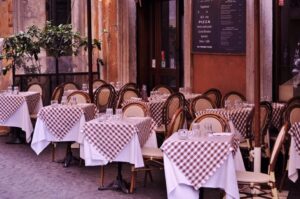 La Belle Epoque was situated down a narrow, cobbled street branching off from the main square. Outside, tables, covered with red-and-white tablecloths, and bentwood chairs were placed along each of the two large windows. Ornamental fruit trees in brightly glazed pots separated each table.